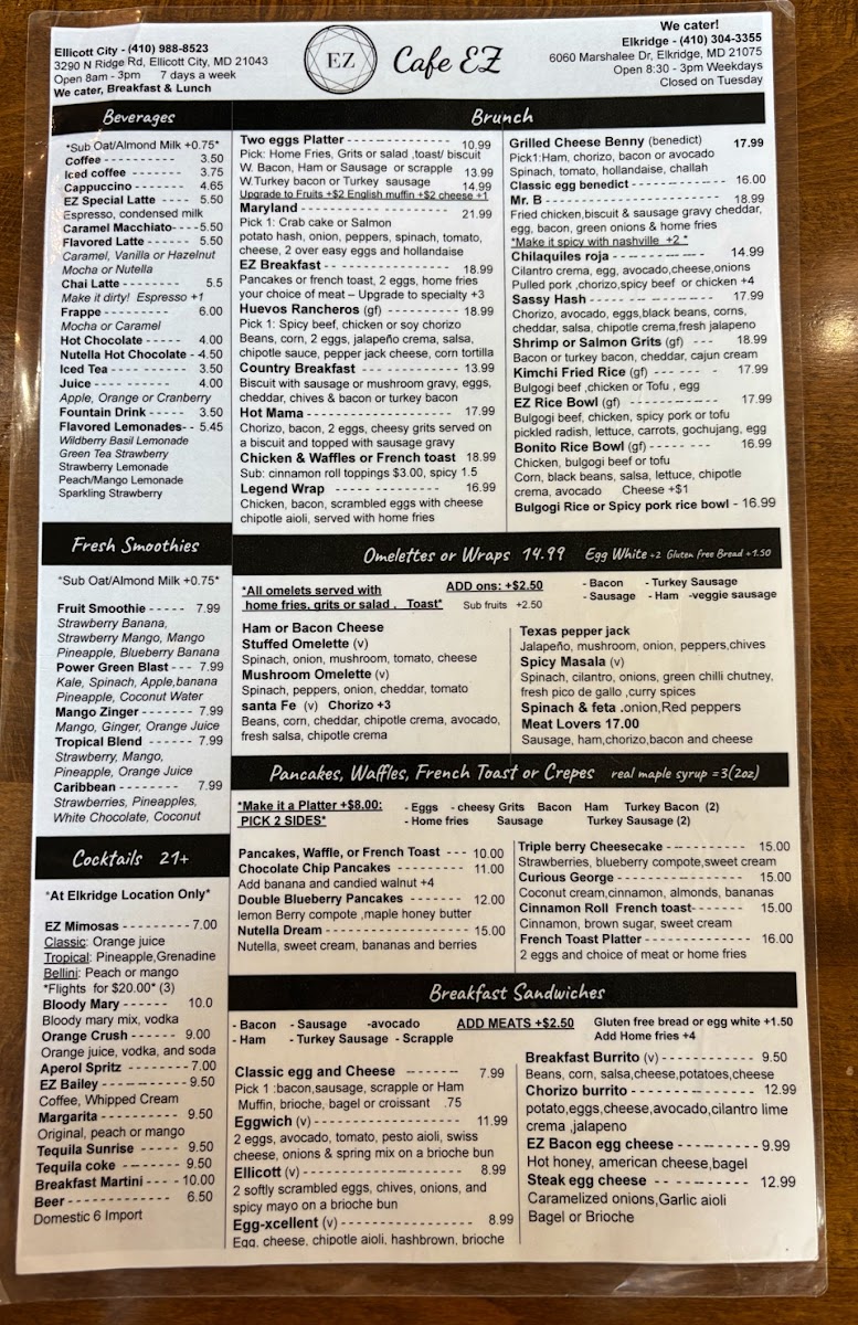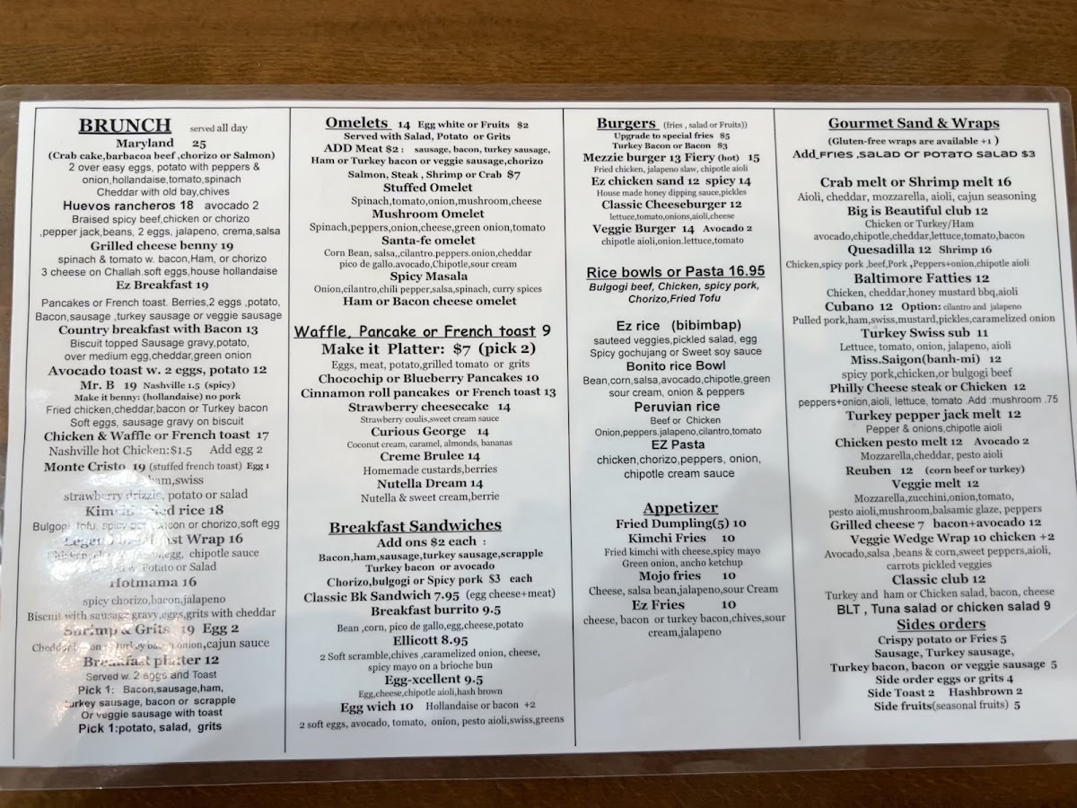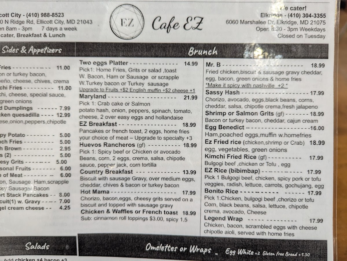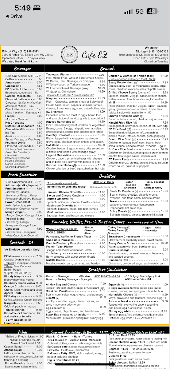 If you're looking for a place where you can indulge in delicious food and cozy vibes, Cafe Ez 2 At Elkridge Menu has got you covered. Located at 6060 Marshalee Dr in Elkridge, MD, this charming cafe offers a variety of options to please any palate. From fresh salads to mouthwatering sandwiches and savory pastries, there's something for everyone to enjoy. Whether you're in the mood for a hearty meal or just a quick bite with your favorite coffee, Cafe Ez 2 has it all. The inviting atmosphere makes it a perfect spot for a casual meal with friends or a relaxing solo dining experience. You'll love the selection of homemade dishes, each crafted with care and the finest ingredients.