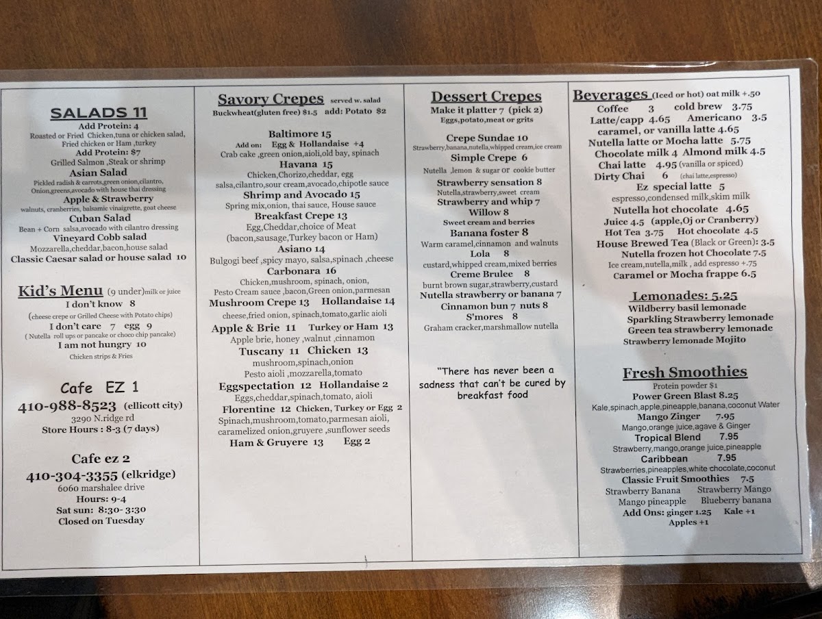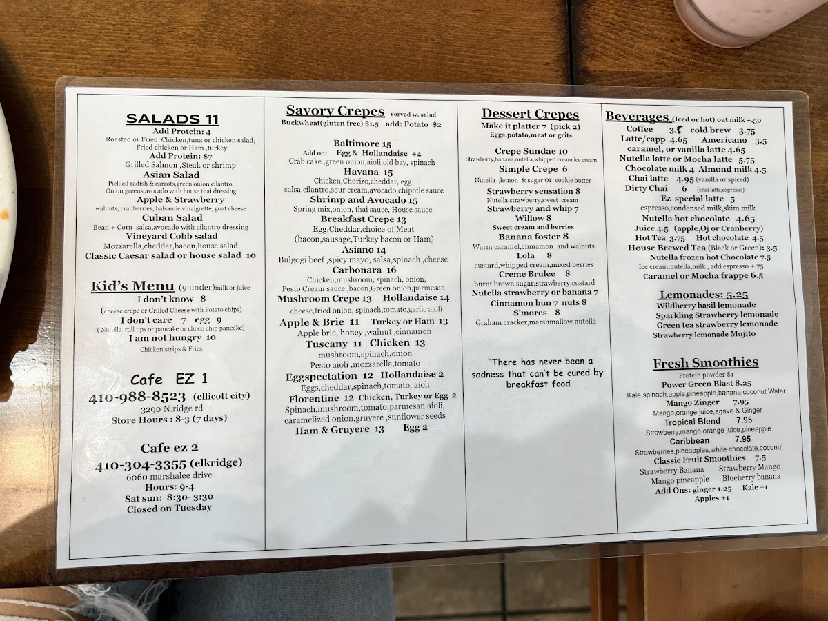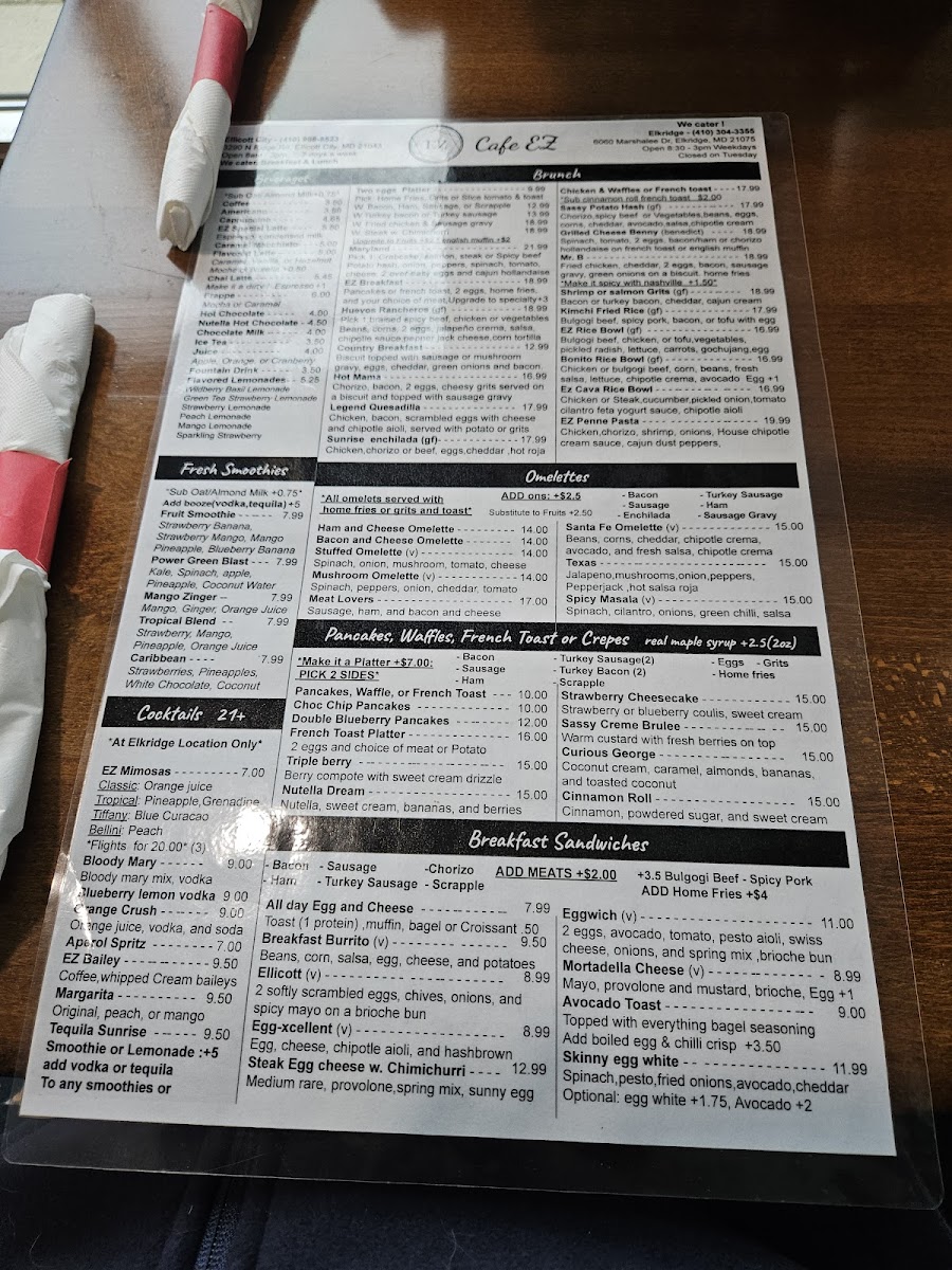 If you're looking for a place where you can indulge in delicious food and cozy vibes, Cafe Ez 2 At Elkridge Menu has got you covered. Located at 6060 Marshalee Dr in Elkridge, MD, this charming cafe offers a variety of options to please any palate. From fresh salads to mouthwatering sandwiches and savory pastries, there's something for everyone to enjoy. Whether you're in the mood for a hearty meal or just a quick bite with your favorite coffee, Cafe Ez 2 has it all. The inviting atmosphere makes it a perfect spot for a casual meal with friends or a relaxing solo dining experience. You'll love the selection of homemade dishes, each crafted with care and the finest ingredients.